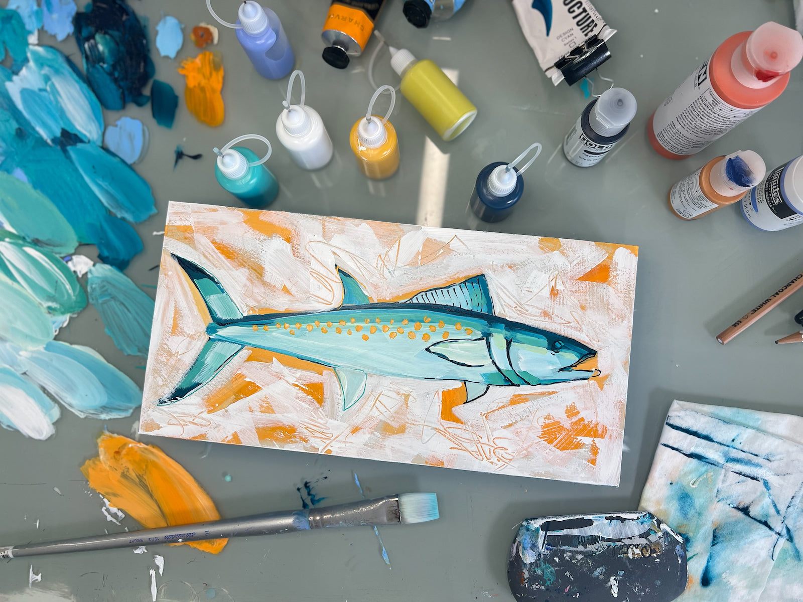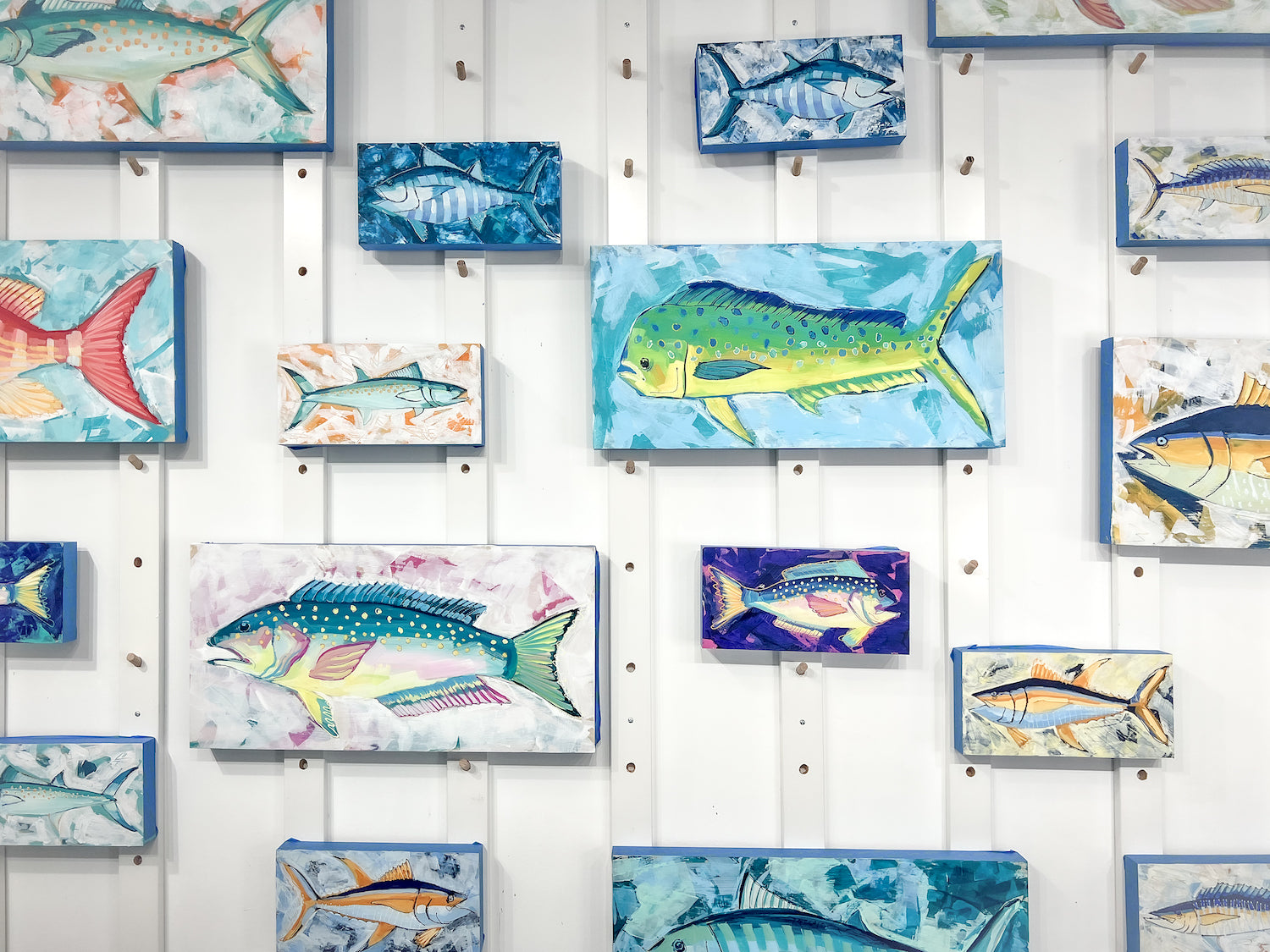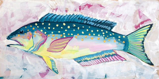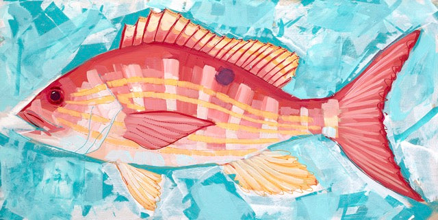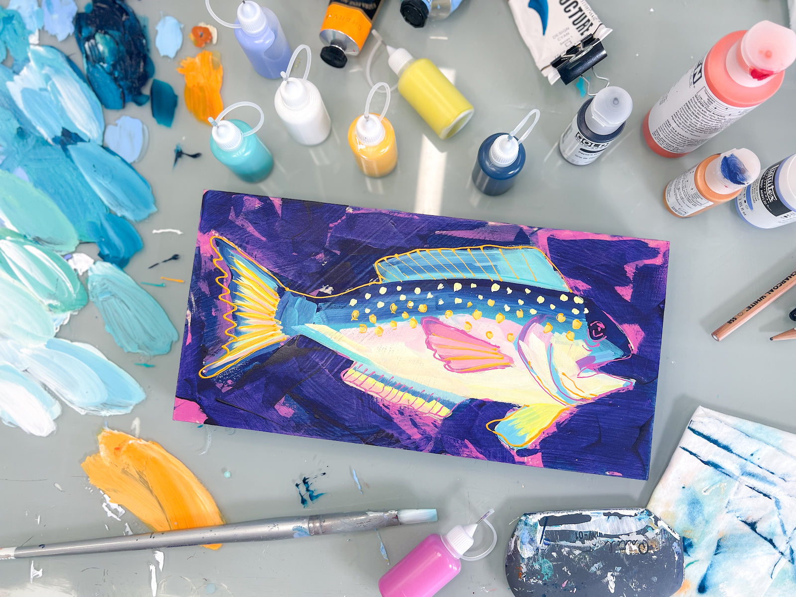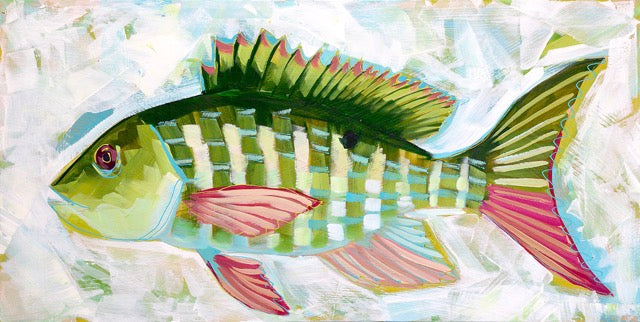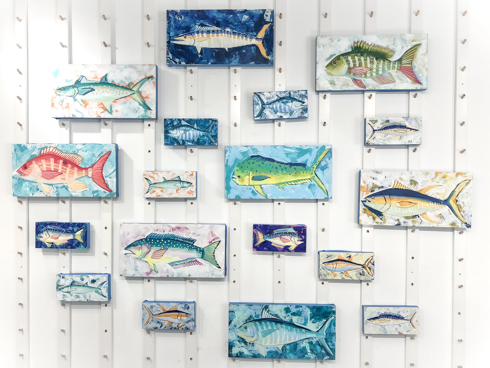 Inspired by a childhood memory of fishing with my dad, this brand new collection of fish paintings is a joyful celebration of color and life.