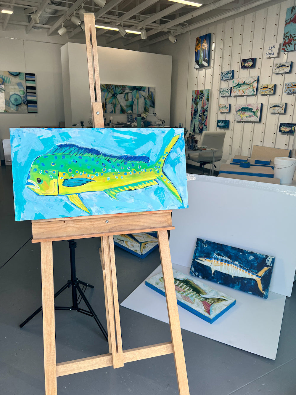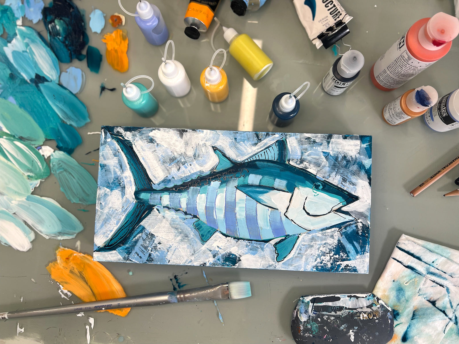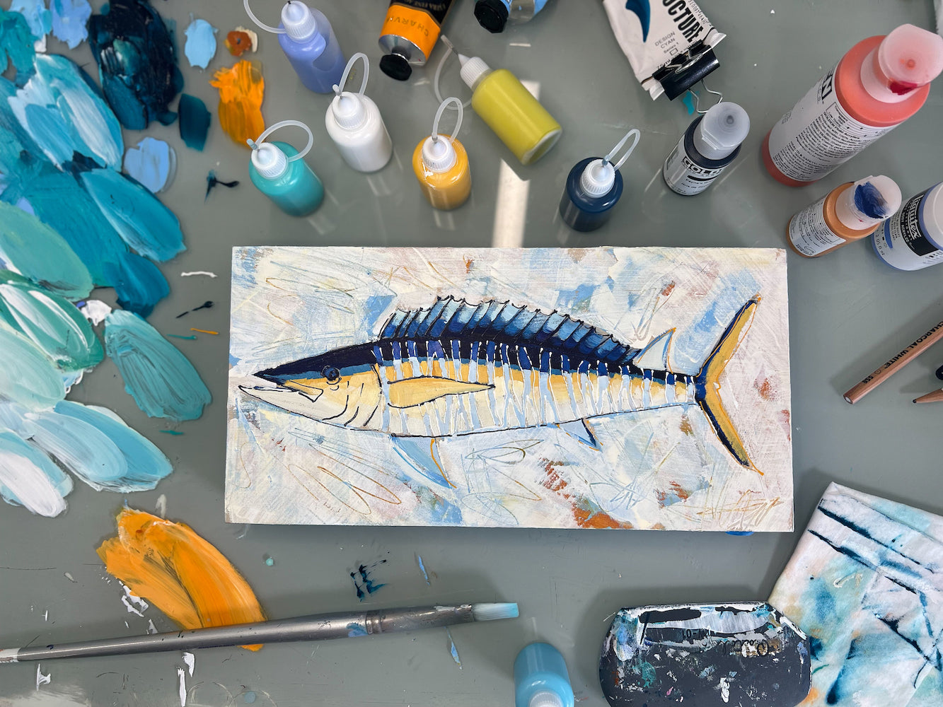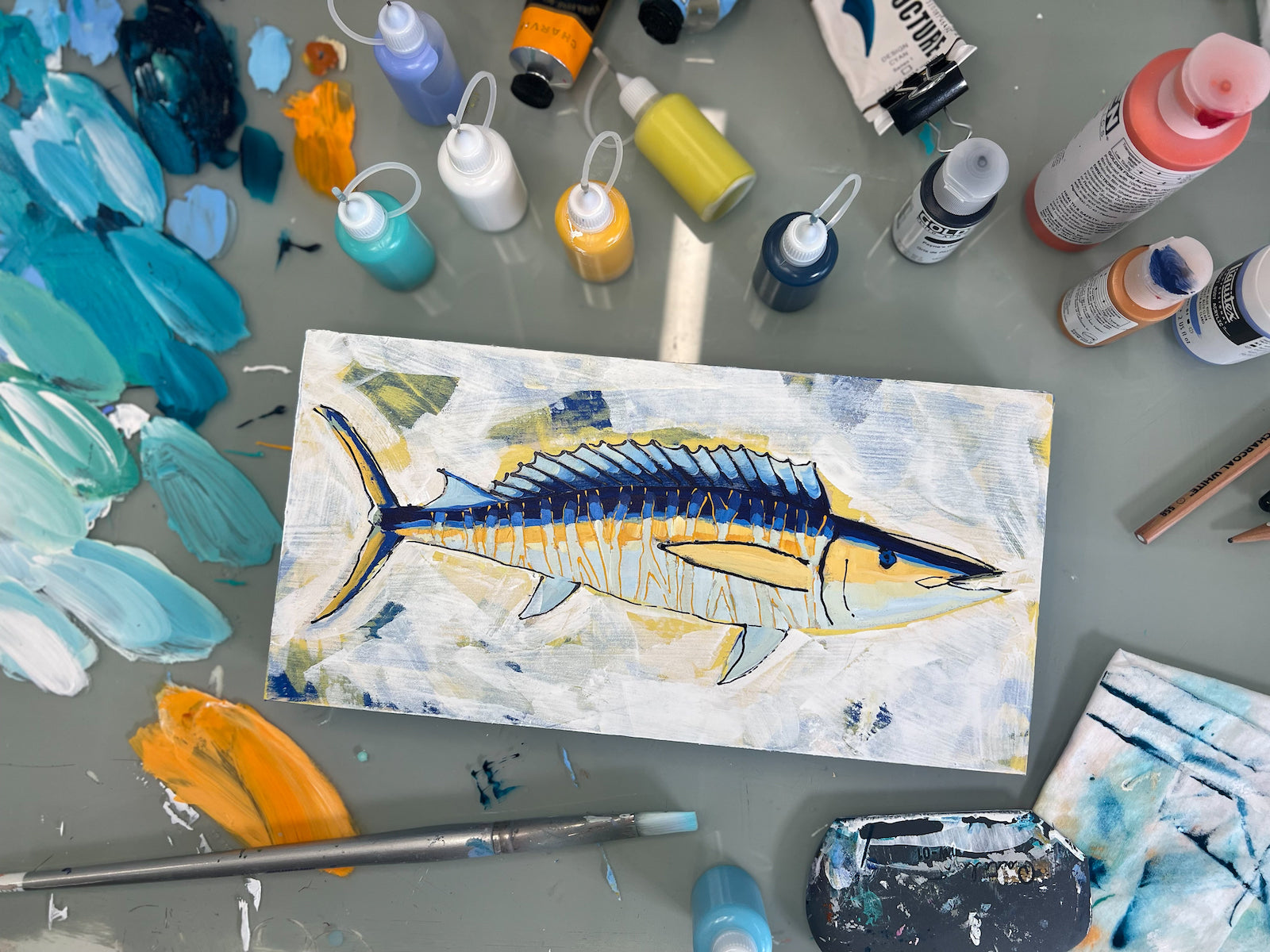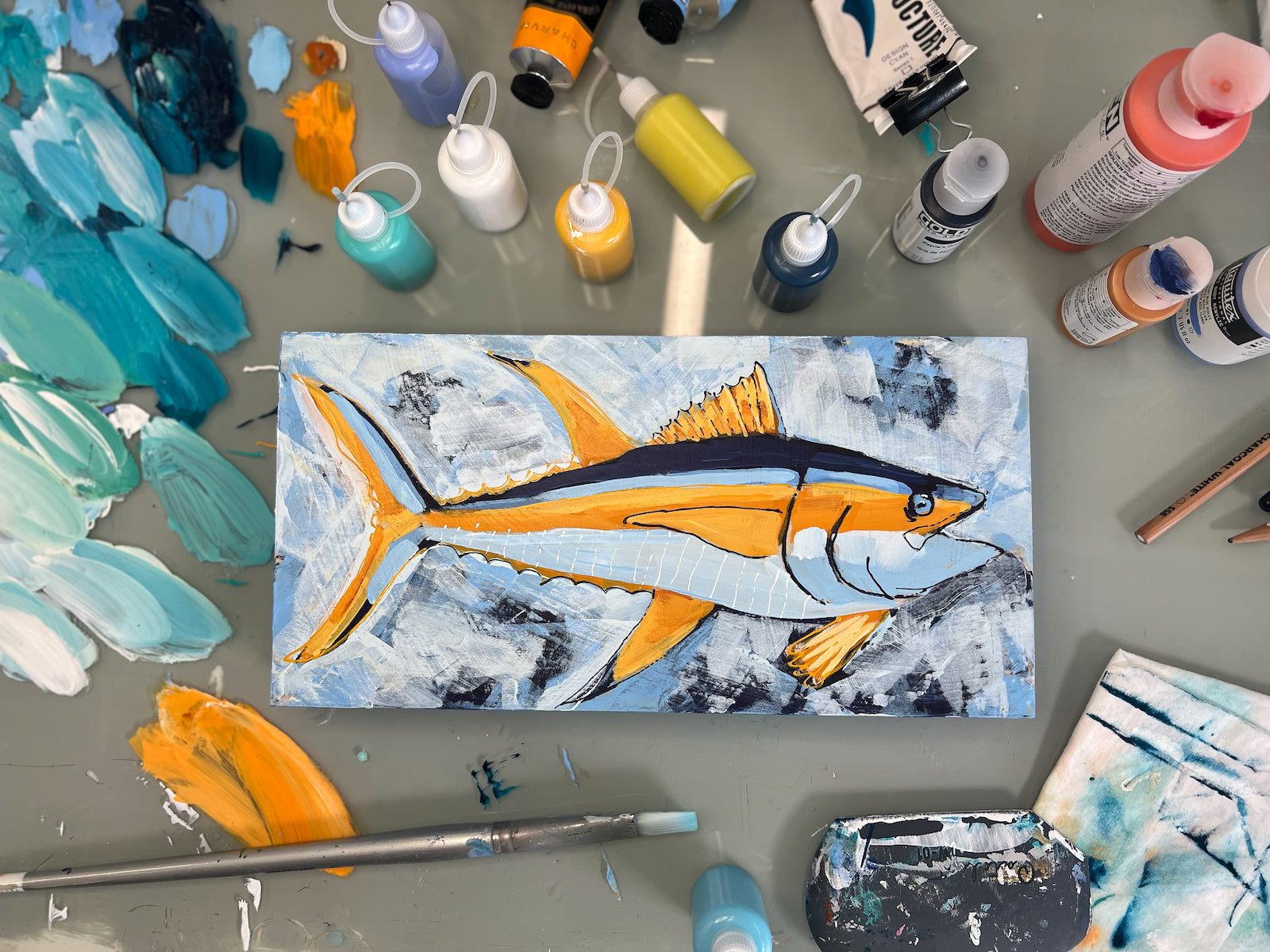 Inspired by a childhood memory of fishing with my dad, this brand new collection of fish paintings is a joyful celebration of color and life.
