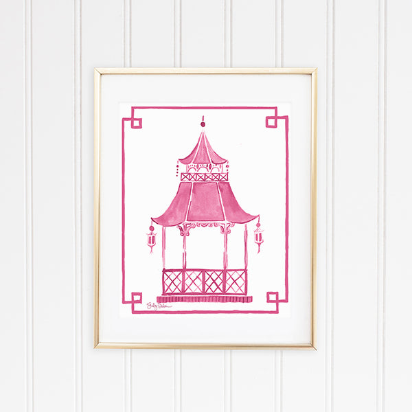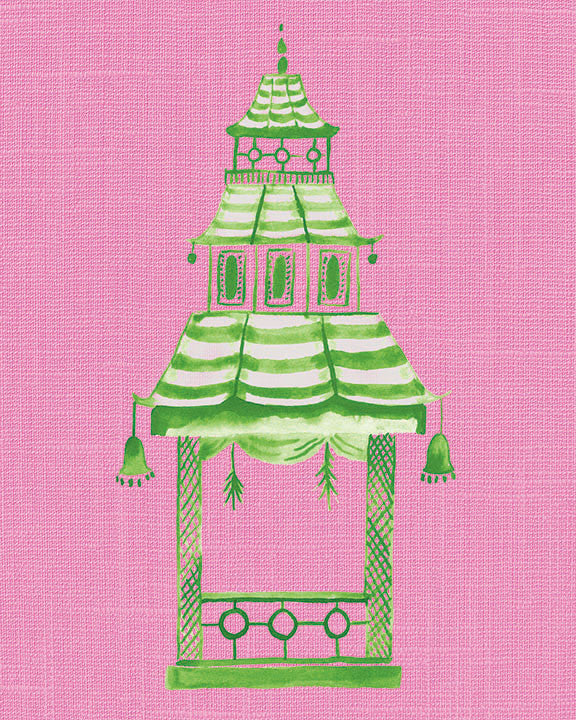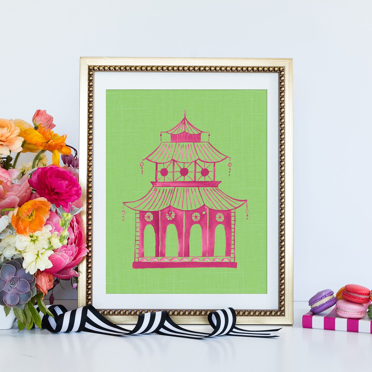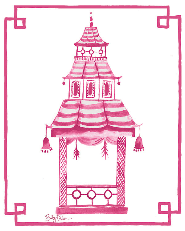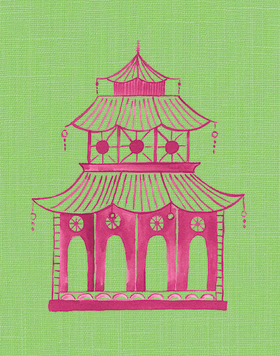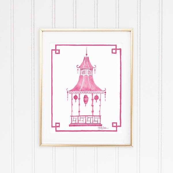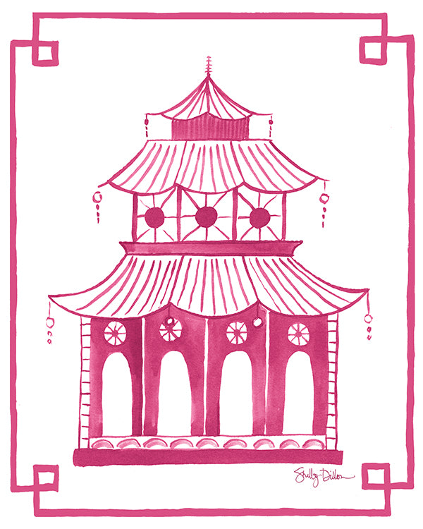 Bring home a modern take on elegant old-world Chinoiserie. This colorful art print of an original, hand-painted pink watercolor pagoda design will lend chic sophistication...