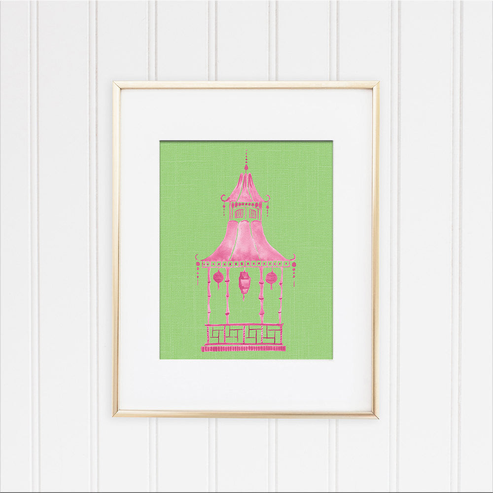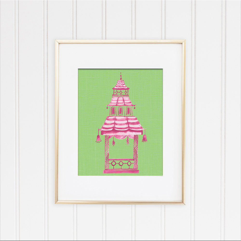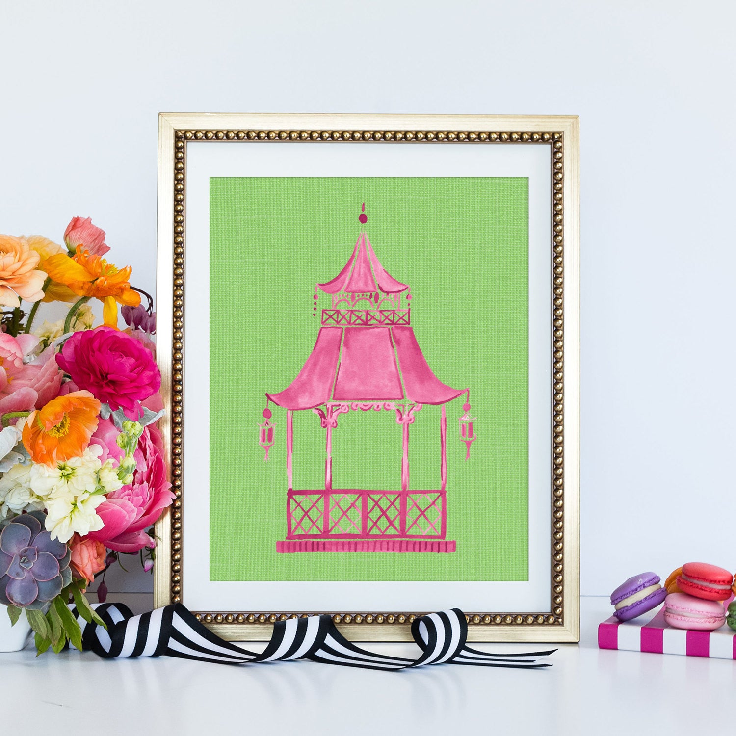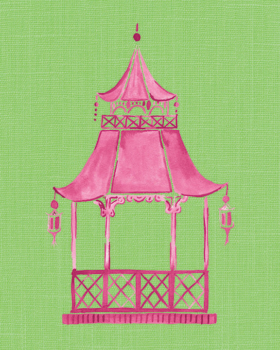 Bring home a modern take on elegant old-world Chinoiserie. This colorful art print of an original, hand-painted pink watercolor pagoda design will lend chic sophistication...