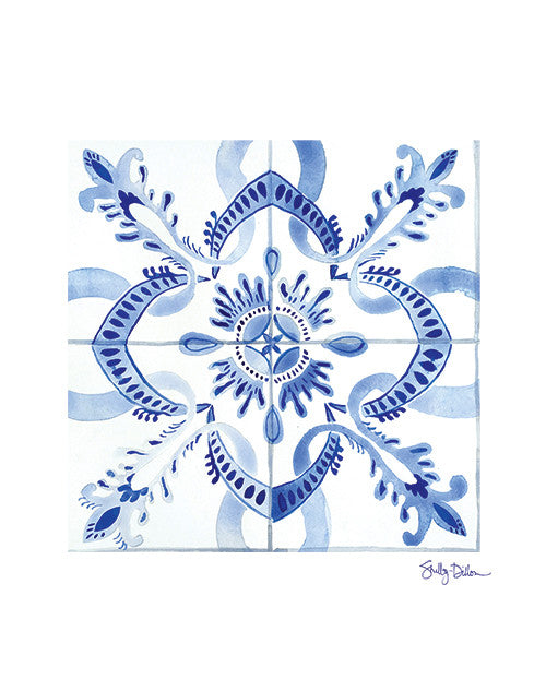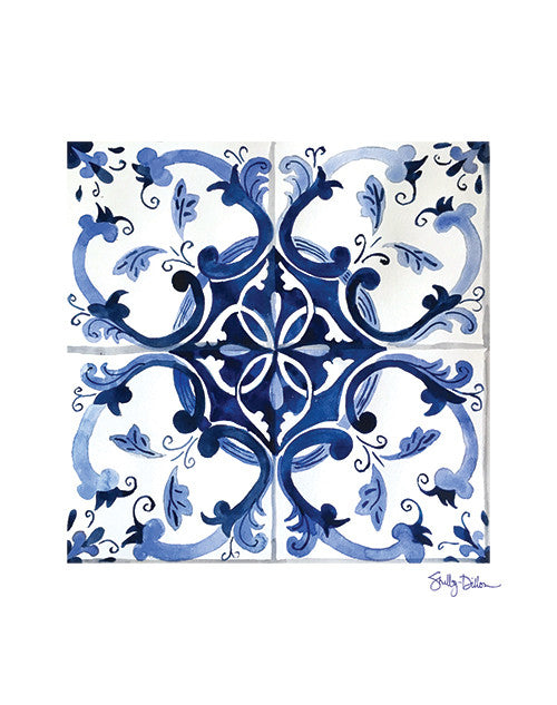 A Spanish inspired beautiful blue and white tile art print by Shelby Dillon Studio. Azulejo tiles like these can be seen throughout the Mediterranean, scattered...