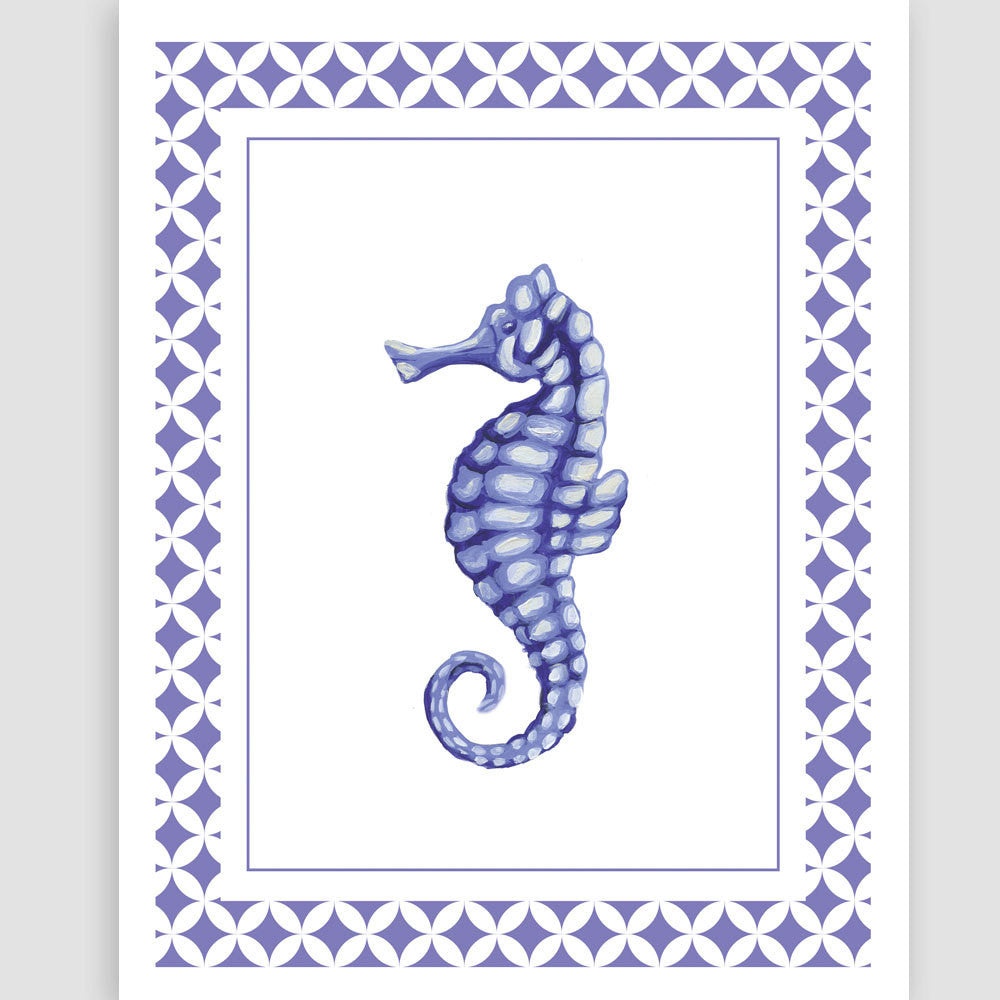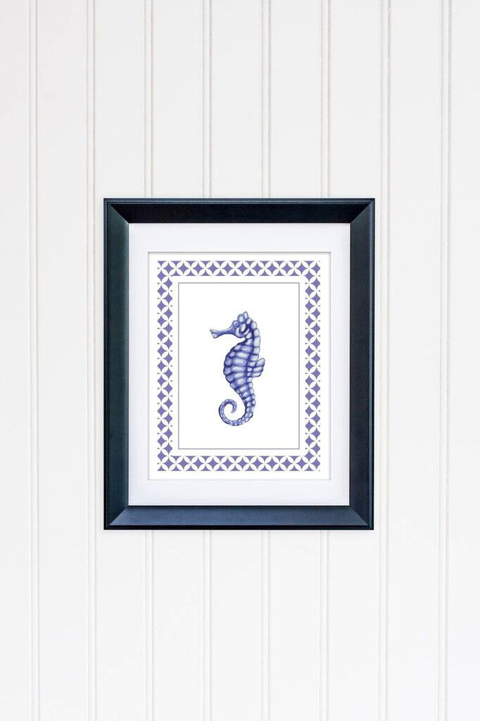Blue Seahorse Art Print - We absolutely love the way this little seahorse makes us smile! Cool and blue, he brings a bit of the...